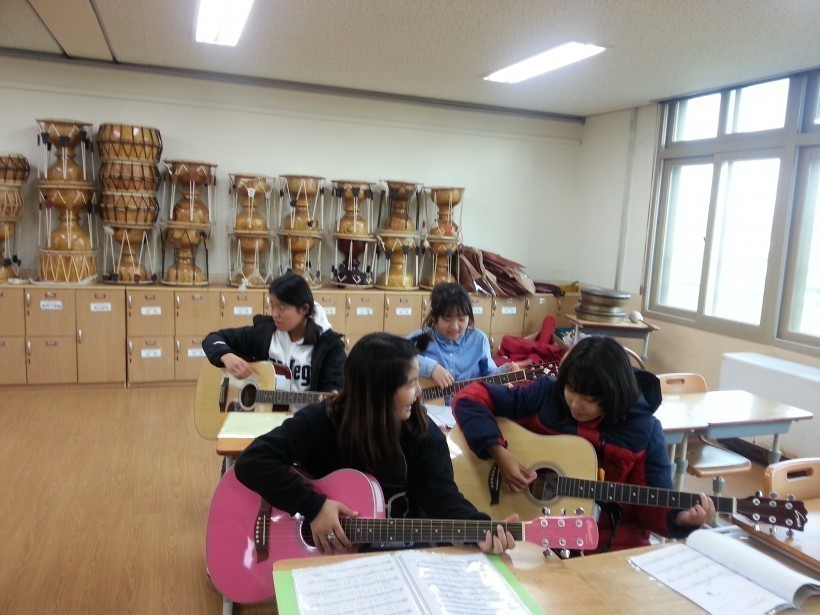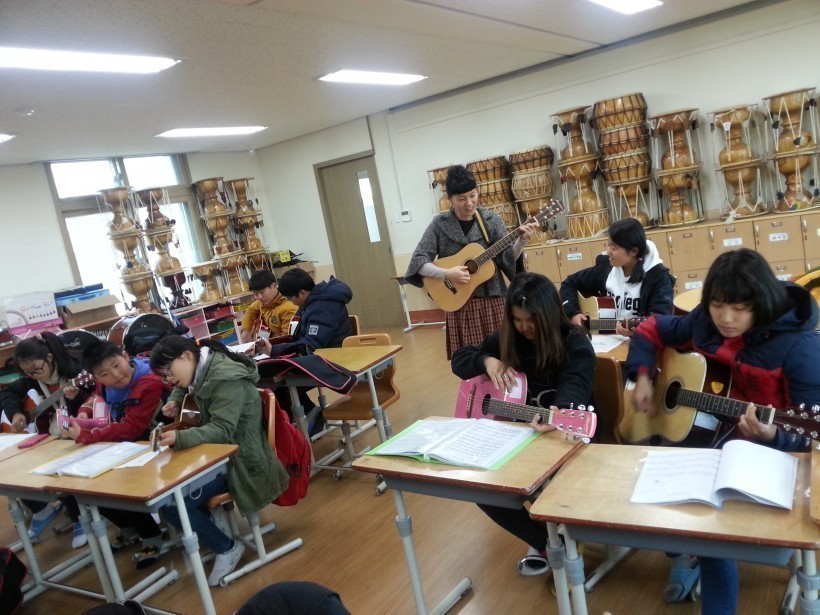 관촌초 방과후학교 기타 수업 모습입니다.