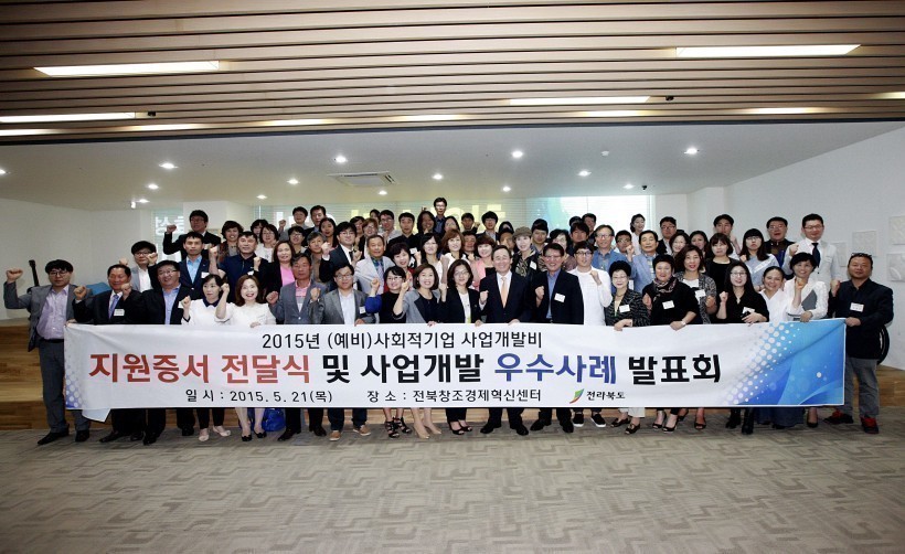 사회적기업 사업개발비 지원증서 전달식 및 우수사례 발표회 페이지 정보 작성자 (주)두드림 작성일15-06-16 14:00 조회6,456회 댓글0건 목록 본문 2015년 (예비) 사회적기업 사업개발비지원증서 전달식 및 사업개발 우수사례 발표회 일시 : 2015.05.21(목) 장소 : 전북창조경제혁신센터 댓글목록 등록된 댓글이 없습니다. 목록
